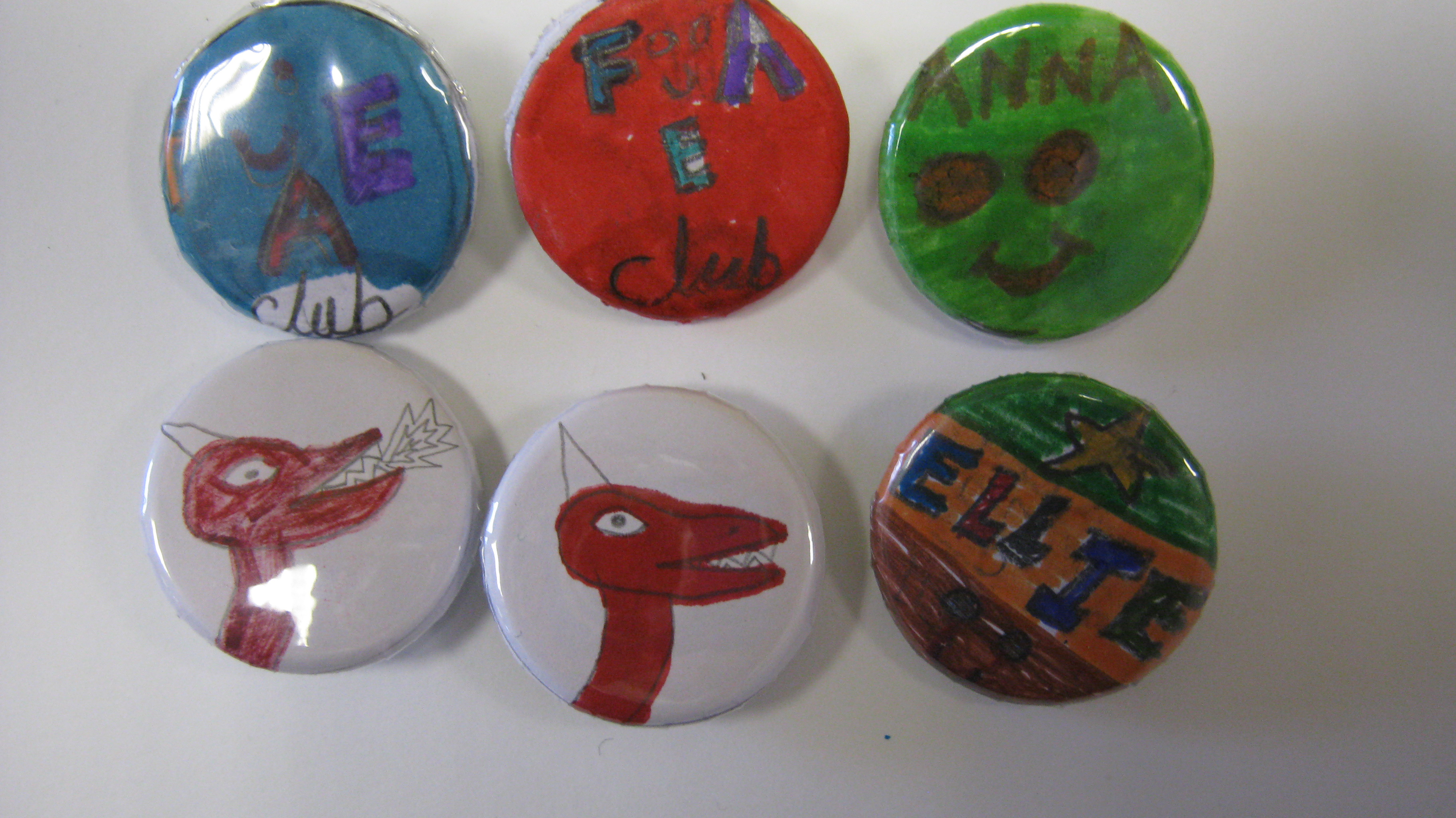 Yesterday the eight week Art Club course finished with a session of making badges. This is an important step for the children as it allows them to see their own artwork transformed into objects that have a place in the adult world. Lots have been learnt over the past two months with more to come in the summer holidays – see you then!
