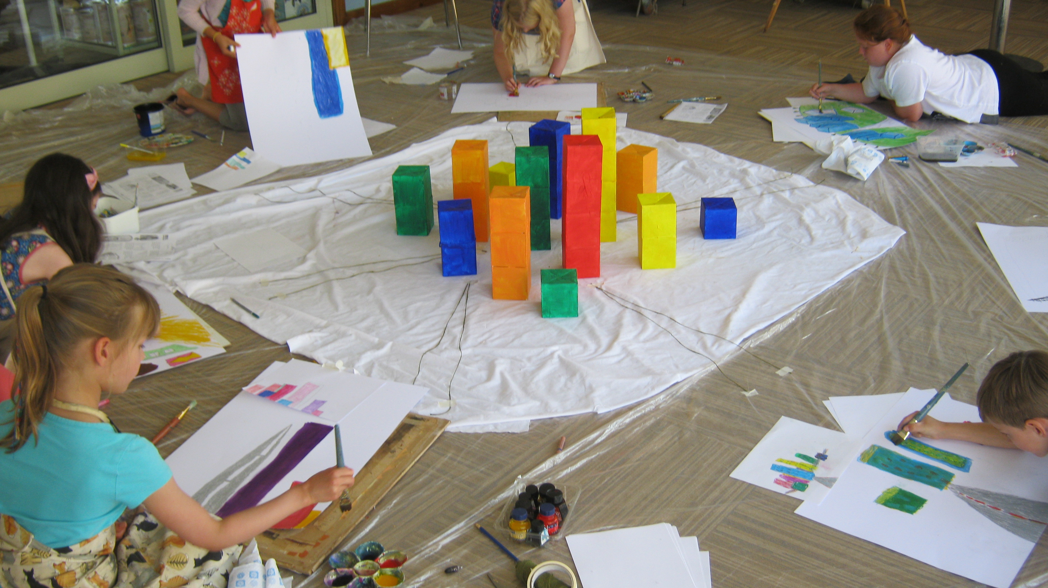 I love working with children as the enthusiasm is so catching – here we are looking at the subject of perspective in our own invented city complete with converging highways using oil pastels, water soluble pencils and coloured ink.