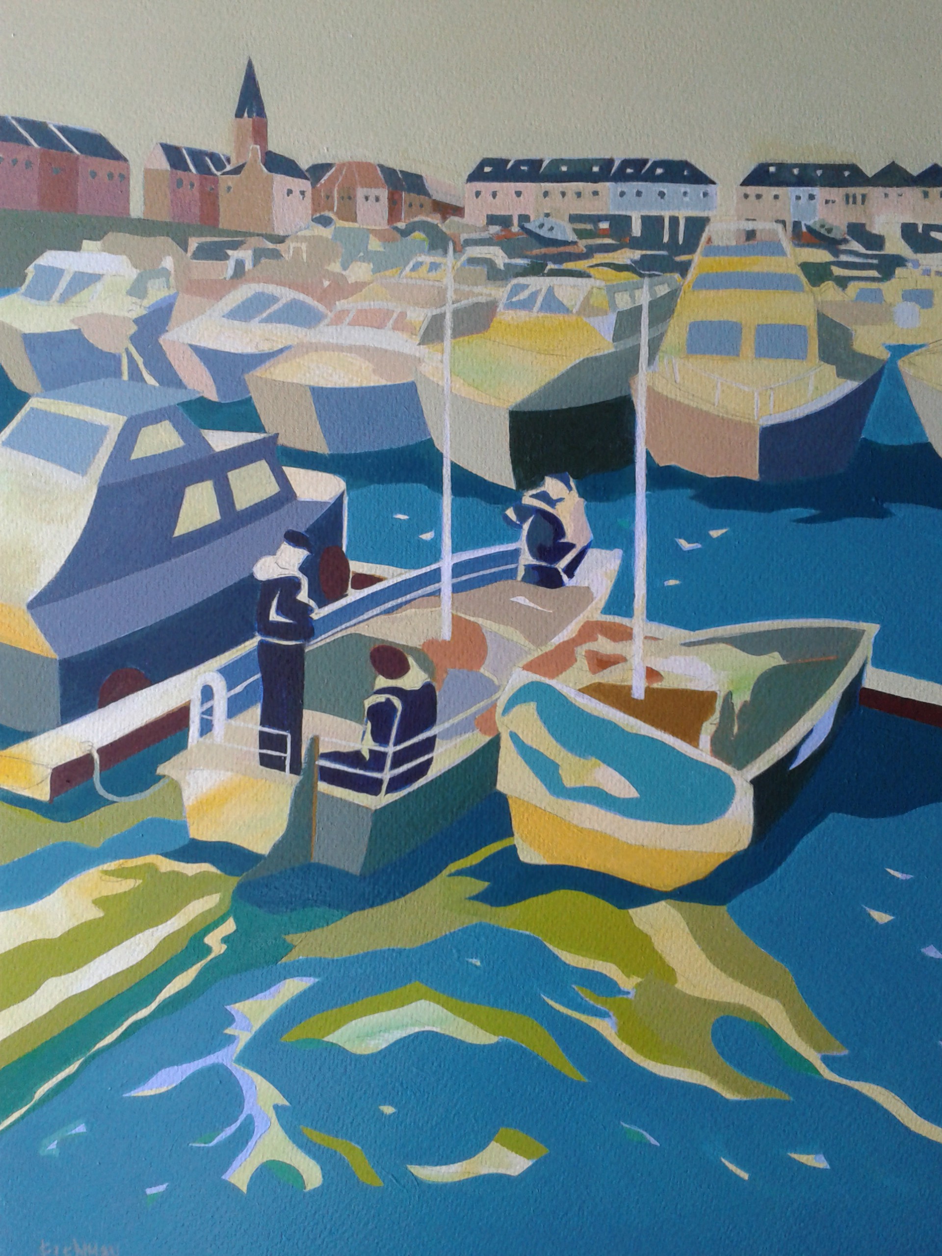 Playing around with colours and forms and interested in developing themes running around in my head; at the moment its how to effectively paint all the quirkiness of St Sampsons; so this is a work in progress.